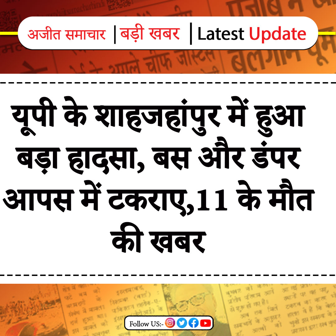 यूपी के शाहजहांपुर में हुआ बड़ा हादसा, बस और डंपर आपस में टकराए,11 के मौत की खबर