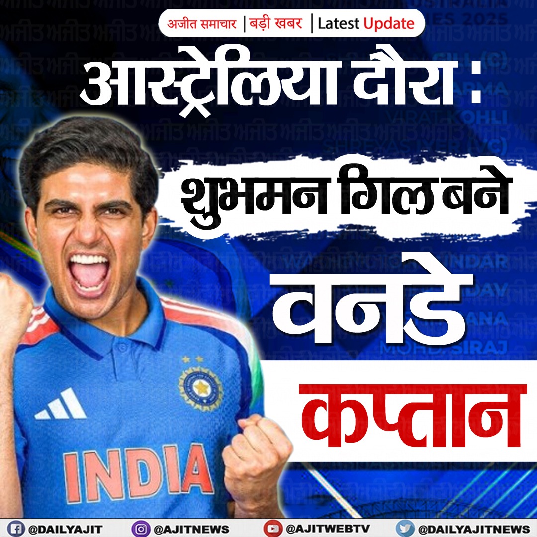 नई दिल्ली, 4 अक्टूबर - भारतीय क्रिकेट कंट्रोल बोर्ड (बीसीसीआई) ने ऑस्ट्रेलिया दौरे के लिए वनडे और टी20 टीम का एलान कर दिया है। रोहित शर्मा की जगह शुभमन गिल को भारतीय वनडे टीम का कप्तान बनाया गया है, जबकि श्रेयस अय्यर वनडे में टीम के उपकप्तान होंगे। भारत और ऑस्ट्रेलिया के बीच 19 अक्तूबर से वनडे सीरीज खेली जाएगी।