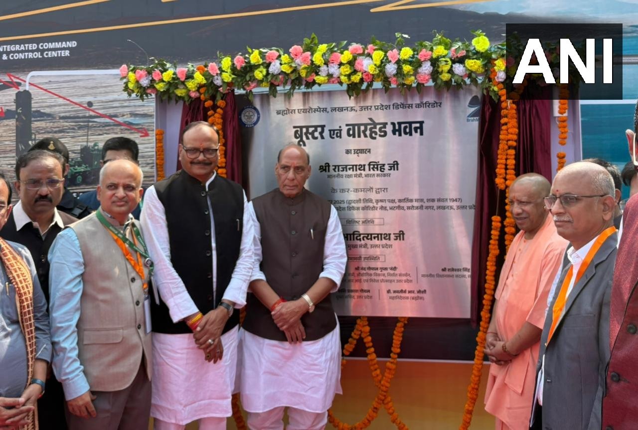 लखनऊ (उत्तर प्रदेश), 18 अक्तूबर - रक्षा मंत्री राजनाथ सिंह और उत्तर प्रदेश के मुख्यमंत्री योगी आदित्यनाथ ने लखनऊ में ब्रह्मोस एयरोस्पेस यूनिट में बूस्टर और वारहेड बिल्डिंग का उद्घाटन किया।