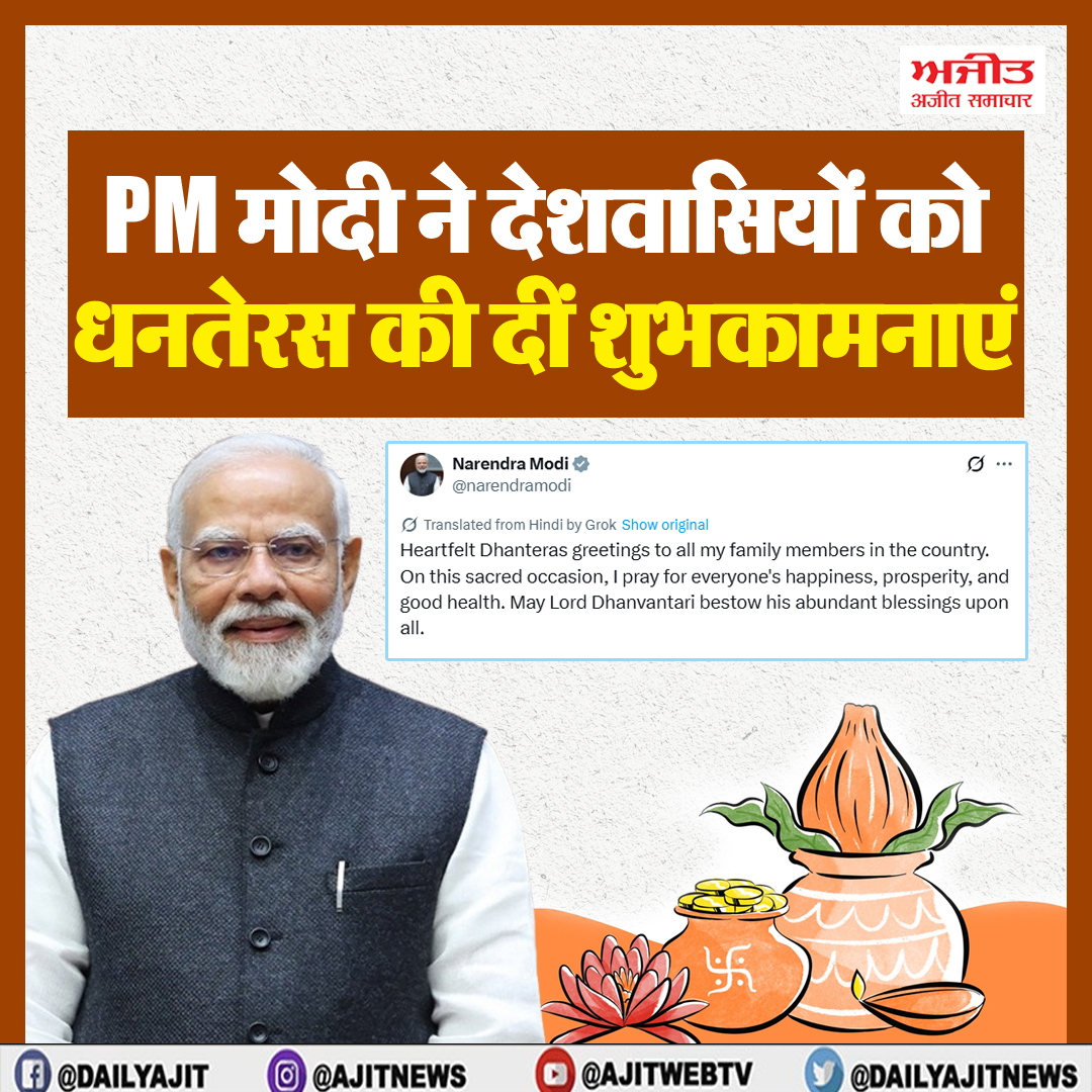 मोदी ने देशवासियों को धनतेरस की शुभकामनाएं दीं