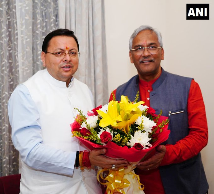 सीएम धामी ने त्रिवेन्द्र सिंह रावत से मुलाकात कर धनतेरस एवं दीपावली दीं बधाई