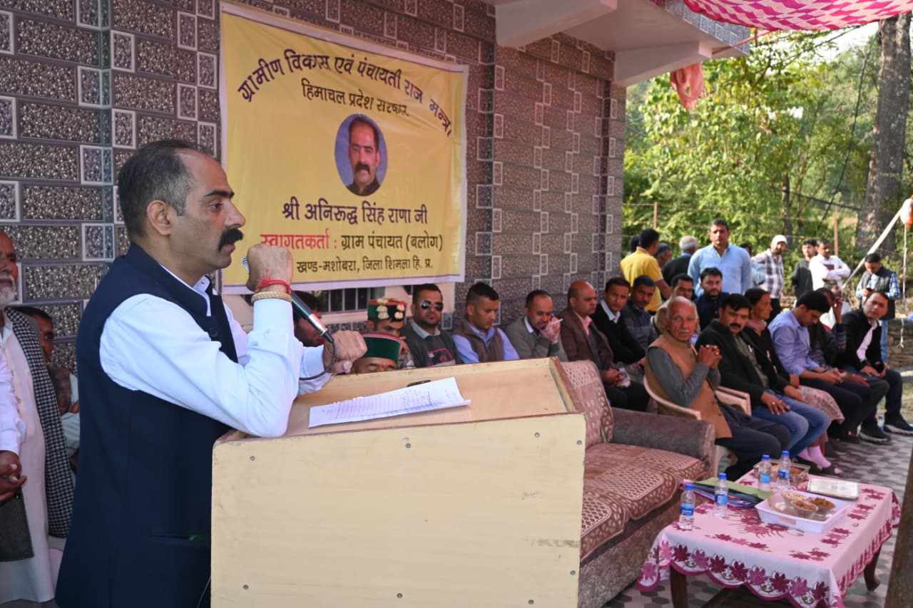 उन्होंने कहा कि वर्तमान सरकार के कार्यकाल के दौरान बलोग पंचायत को लगभग 17 लाख रुपए की राशि स्वीकृत की गई हैं जिनके निर्माण कार्य प्रगति पर है। उन्होंने कहा कि प्रदेश की सभी पंचायतों में आधुनिक सुविधाओं सहित पंचायत भवन निर्माण करना तथा हर गांव को सड़क सुविधा प्रदान करना सरकार की प्राथमिकता में शामिल है। उन्होंने कहा कि लखोटी को जोड़ने वाली ट्राई पीरन सड़क के कुछ हिस्से का निर्माण कर लिया गया है लेकिन आगे के हिस्से की गिफ्ट डीड ना होने से सड़क का निर्माण नहीं हो पा रहा है ।