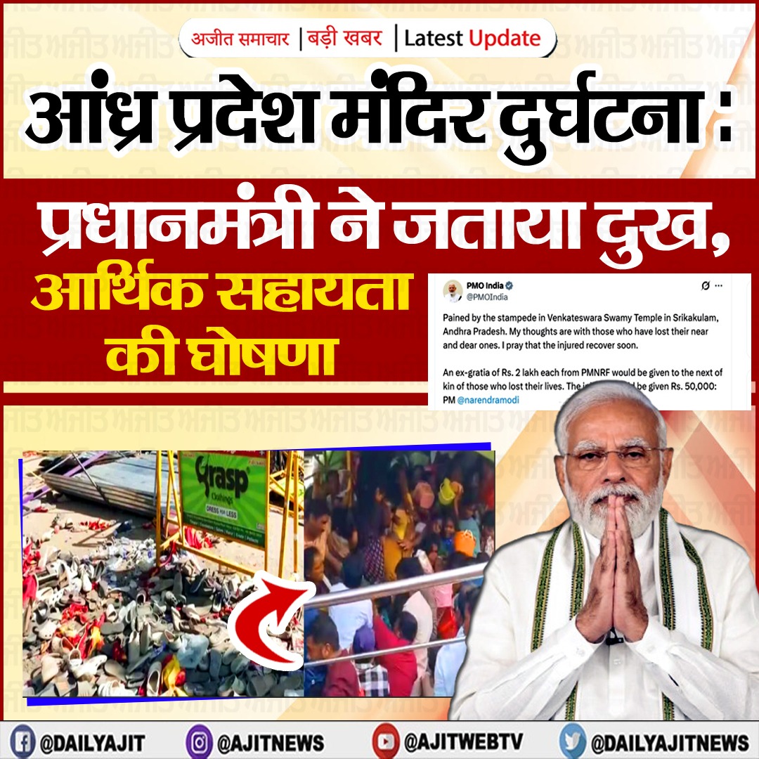आंध्र प्रदेश मंदिर दुर्घटना: प्रधानमंत्री ने जताया दुख, आर्थिक सहायता की घोषणा