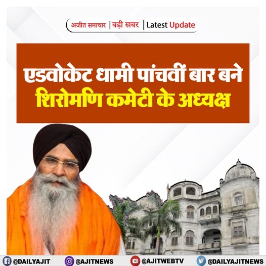 एडवोकेट धामी पांचवीं बार बने शिरोमणि कमेटी के अध्यक्ष