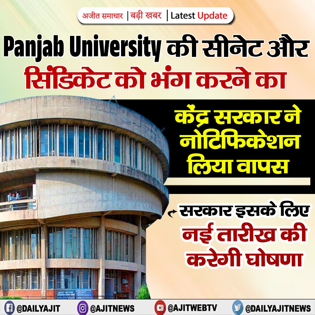 चंडीगढ़, 5 नवंबर (दविंदर)- केंद्र सरकार ने चंद मिनटों में ही अपना रुख फिर पलट दिया है। उसने एक साथ 2 अधिसूचनाएँ जारी की हैं। पहली अधिसूचना के अनुसार, 28 का फैसला वापस ले लिया गया था, लेकिन दूसरी अधिसूचना में 28 का फैसला बरकरार रखा गया है, सिर्फ़ क्रियान्वयन की अवधि को फिलहाल टाल दिया गया है। इनके अनुसार, पंजाब विश्वविद्यालय सीनेट को भंग करने का फैसला न तो रद्द किया गया है और न ही बदला गया है। इसे सिर्फ़ 'स्थगित' किया गया है। केंद्र सरकार इसके लिए नई तारीख़ की घोषणा करेगी।