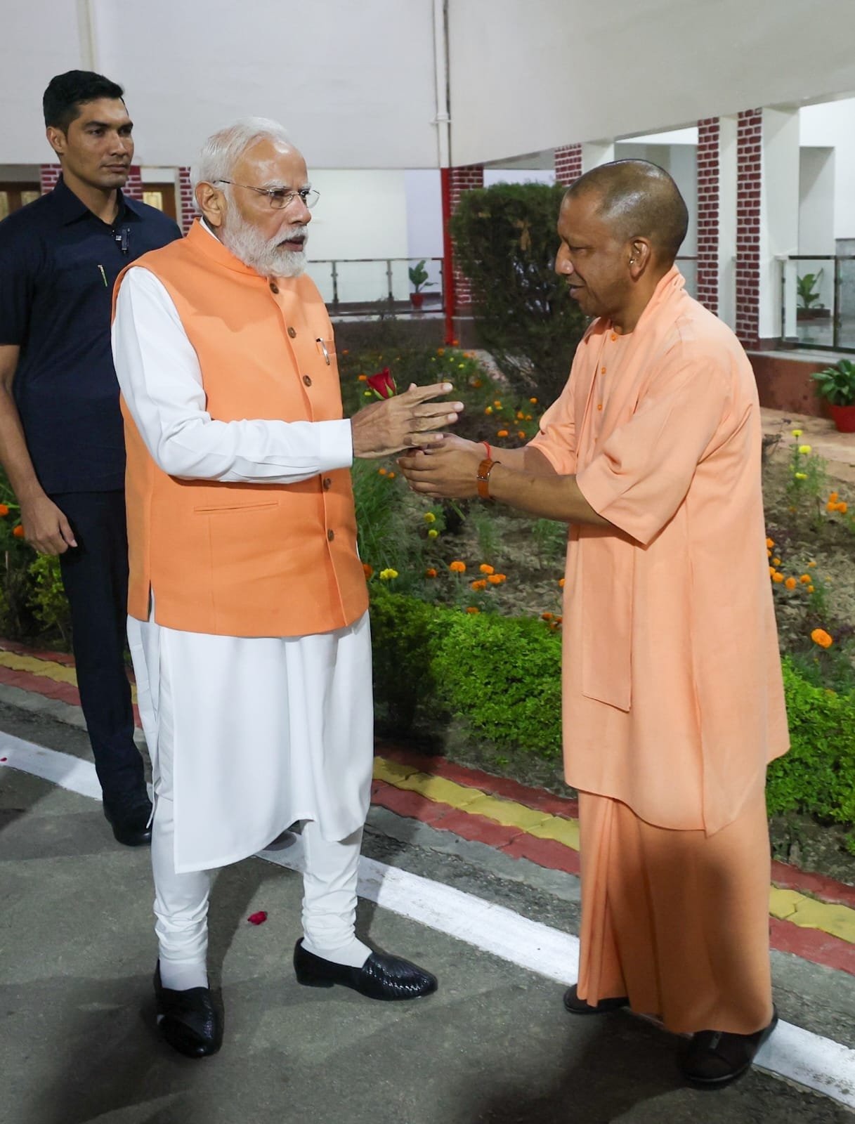 सीएम योगी ने प्रधानमंत्री मोदी के वाराणसी आगमन पर उनका किया स्वागत