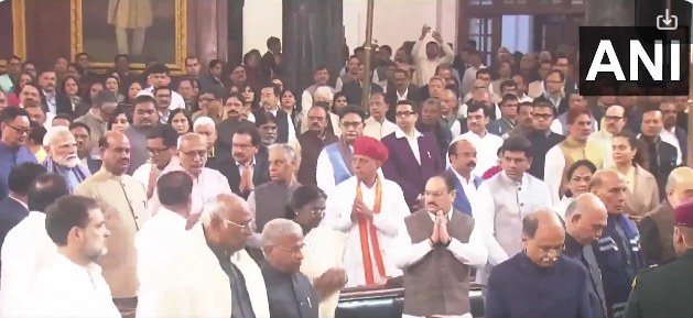 दिल्ली: राष्ट्रपति द्रौपदी मुर्मू, उपराष्ट्रपति सीपी राधाकृष्णन, प्रधानमंत्री नरेंद्र मोदी, लोकसभा स्पीकर ओम बिरला, राज्यसभा LoP मल्लिकार्जुन खरगे, लोकसभा में नेता प्रतिपक्ष राहुल गांधी और दूसरे नेता 75वें संविधान दिवस के मौके पर संसद के संविधान सदन में संविधान दिवस प्रोग्राम में शामिल हुए।