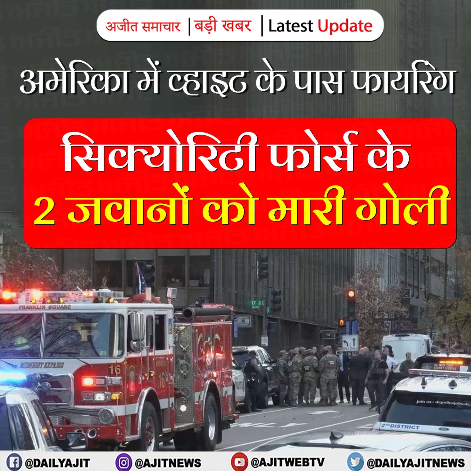 अमेरिका में व्हाइट के पास फायरिंग, सिक्योरिटी फोर्स के 2 जवानों को मारी गोली
