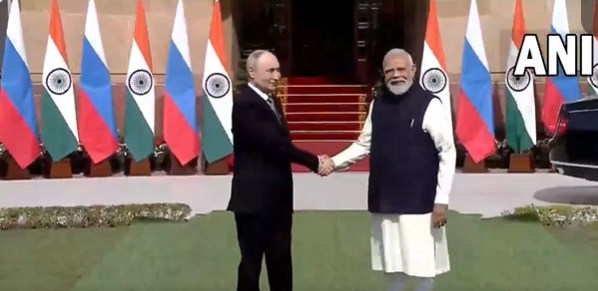 दिल्ली | रूसी राष्ट्रपति व्लादिमीर पुतिन ने दिल्ली के हैदराबाद हाउस में प्रधानमंत्री मोदी से मुलाकात की।