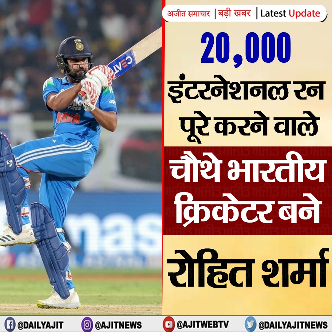 20,000 इंटरनेशनल रन पूरे करने वाले चौथे भारतीय क्रिकेटर बने रोहित शर्मा