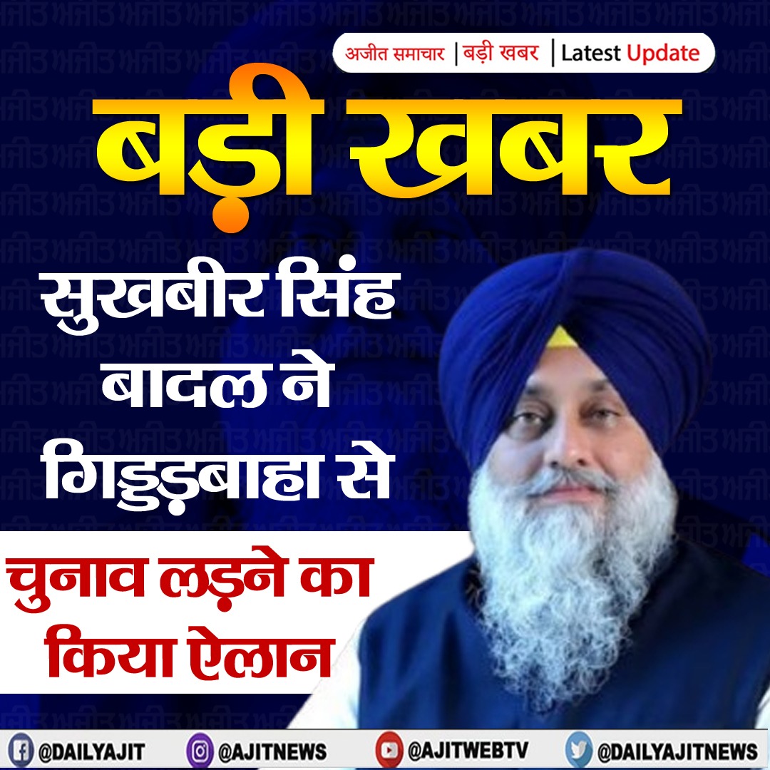 #सुखबीर सिंह बादल ने गिद्दड़बाहा से चुनाव लड़ने का किया ऐलान