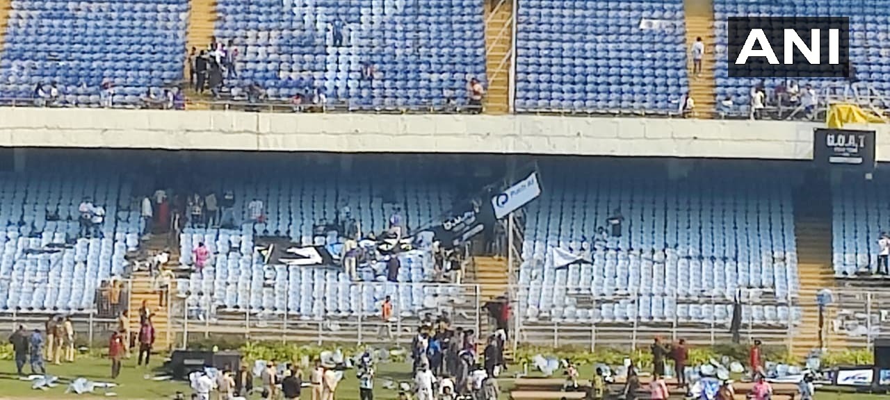 हैदराबाद, 13 दिसंबर- लियोनेल मेसी अपने GOAT टूर पर भारत आ चुके हैं। वे आज कोलकाता पहुंचे और साल्ट लेक स्टेडियम का दौरा किया। सम्मान समारोह के बाद वे स्टेडियम से जल्दी निकल गए। इसके बाद साल्ट लेक स्टेडियम में मौजूद फैंस ने हंगामा किया। उन्होंने कुर्सियां और बोतलें फेंकी। इसका एक वीडियो सामने आया है। मेसी को देखने के लिए हजारों फैंस जमा हुए थे। जब वे स्टेडियम से जल्दी निकल गए तो फैंस गुस्सा हो गए। स्टार फुटबॉलर लियोनेल मेसी के एक फैन ने कहा कि मेसी के आसपास सिर्फ नेता और एक्टर थे। तो उन्होंने हमें क्यों बुलाया? हमने 12,000 रुपये के टिकट खरीदे थे, लेकिन हम उनका चेहरा भी नहीं देख पाए।