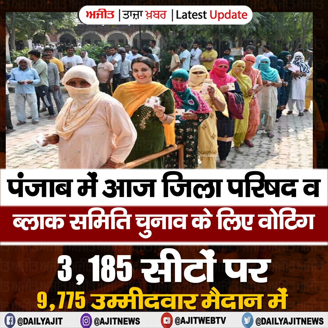 पंजाब में आज जिला परिषद व ब्लॉक समिति चुनाव के लिए वोटिंग शुरू हो गई है। वोटिंग शाम 4 बजे तक चलेगी। चुनाव EVM मशीन नहीं, बल्कि बैलेट पेपर के जरिए हो रहे हैं।