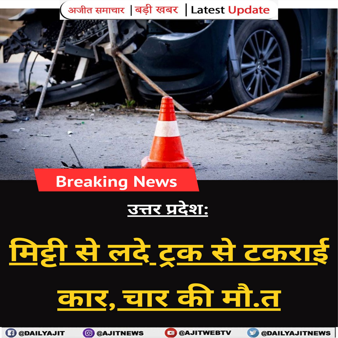 #उत्तर प्रदेश: मिट्टी से लदे ट्रक से टकराई कार