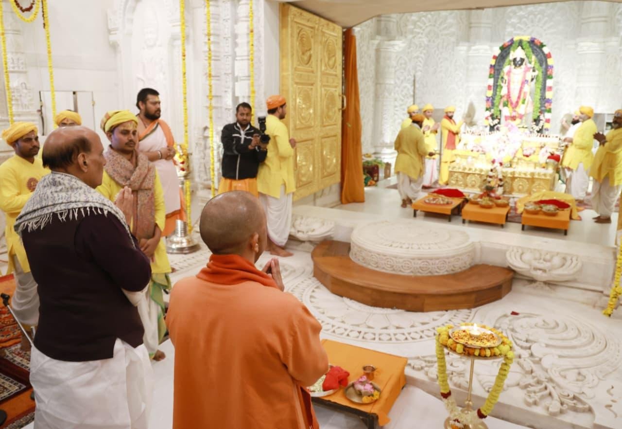लखनऊ, 31 दिसंबर - रक्षा मंत्री राजनाथ सिंह और मुख्यमंत्री योगी आदित्यनाथ आज रामलला की मूर्ति स्थापना की दूसरी सालगिरह पर धार्मिक समारोह में शामिल हुए। इसके बाद रक्षा मंत्री राजनाथ सिंह ने सियावर रामचंद्र के जयकारे के साथ अपना भाषण शुरू किया। इस मौके पर रक्षा मंत्री ने कहा कि मैं इस पवित्र धरती पर आकर बहुत खुश हूं। आज मुझे सब कुछ मिल गया है। दो साल पहले 500 साल के इंतजार के बाद भगवान श्री राम एक भव्य मंदिर में विराजमान हुए थे। रामलला का यह मंदिर हजारों साल तक भगवान श्री राम के जीवन को गौरवान्वित करता रहेगा। राम मंदिर का निर्माण दुनिया की महान गाथाओं में से एक है। राम मंदिर से बड़ा कोई आंदोलन नहीं हुआ। आज हमारे झंडे समंदर पार भी आसमान तक पहुंच रहे हैं। अयोध्या में धर्म का झंडा ऊंचा लहरा रहा है।