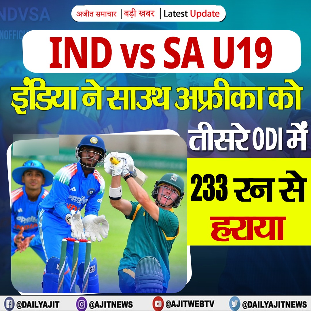 IND vs SA U19 - इंडिया ने साउथ अफ्रीका को तीसरे ODI में 233 रन से हराया