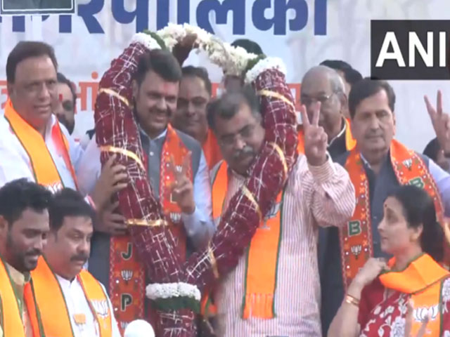 मुंबई, 16 जनवरी - मुंबई में स्टेट भाजपा ऑफिस में बनाए गए स्टेज पर महाराष्ट्र के मुख्यमंत्री देवेंद्र फडणवीस का स्वागत हुआ, क्योंकि भाजपा-शिवसेना महायुति BMC चुनाव और राज्य की ज़्यादातर दूसरी नगर पालिकाओं में बढ़त बनाए हुए है।