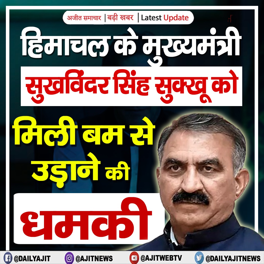 #हिमाचल के मुख्यमंत्री सुखविंदर सिंह सुक्खू को मिली बम से उड़ाने की धमकी