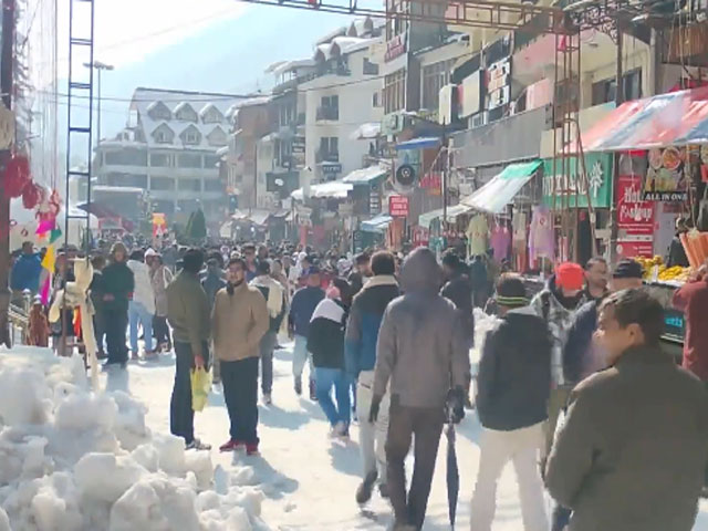 हिमाचल प्रदेश, 24 जनवरी - मनाली में पहाड़ों पर हिमपात पर्यटकों के लिए आकर्षण का केंद्र बनी हुई है।