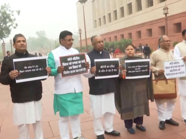 RJD नेताओं ने संसद परिसर में किया विरोध प्रदर्शन