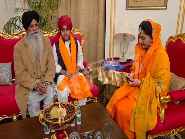 नाभा, (पटियाला), 2 फरवरी (जगनार सिंह दुलाड़ी) - शिरोमणि गुरुद्वारा प्रबंधक कमेटी के अध्यक्ष हरजिंदर सिंह धामी आज नाभा के शाही हीरा महल पहुंचे, जहां उन्होंने पवित्र श्री गुरु ग्रंथ साहिब जी को शरण दी। बाद में एडवोकेट धामी ने शाही परिवार से मुलाकात की और युवराज अभि उदे प्रताप सिंह को पगड़ी पहनाने पर बधाई दी। इसके बाद मीडिया से बात करते हुए एडवोकेट धामी ने कहा कि जब वह पहली बार शाही हीरा महल पहुंचे थे, तो हीरा महल के हालात अलग थे और आज महारानी प्रीति सिंह की मेहनत से हीरा महल को पुराना लुक देकर खूबसूरती से सजाया गया है। इस मौके पर महारानी उमा सिंह, रानी प्रीति सिंह और भाई आत्म प्रकाश सिंह, मैनेजर गुरुद्वारा डेरा बाबा अजापाल सिंह घोड़ियांवाला मौजूद थे।