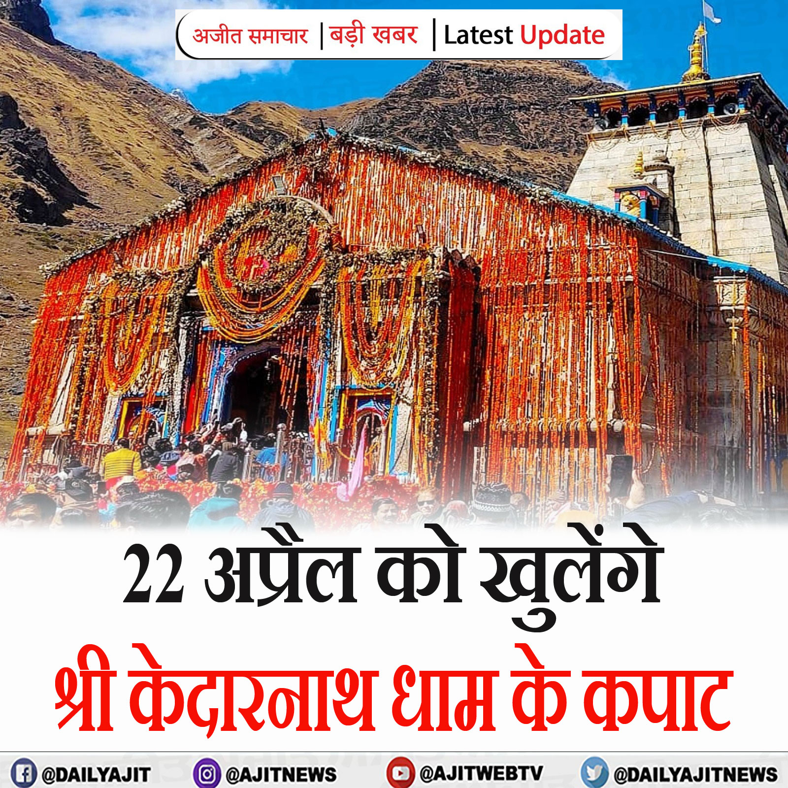 22 अप्रैल को खुलेंगे श्री केदारनाथ धाम के कपाट