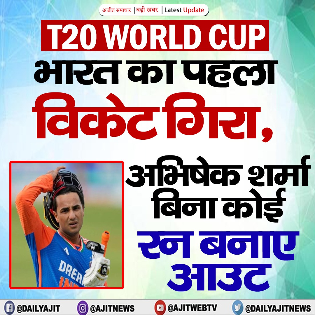 टी20 वर्ल्ड कप भारत-पाकिस्तान मुकाबला: भारत का पहला विकेट गिरा, अभिषेक शर्मा बिना कोई रन बनाए आउट
