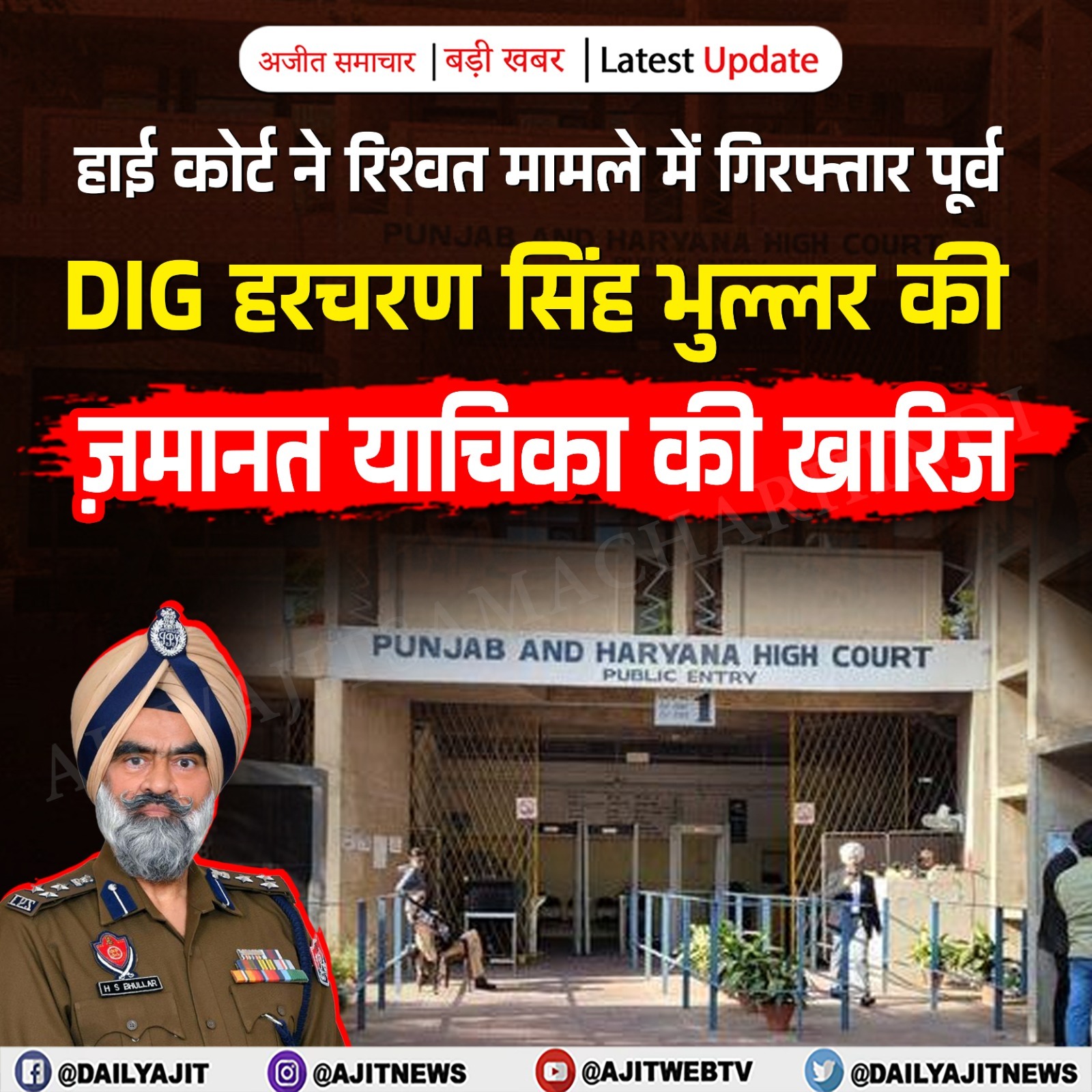 हाई कोर्ट ने रिश्वत मामले में गिरफ्तार पूर्व DIG हरचरण सिंह भुल्लर की ज़मानत याचिका की खारिज