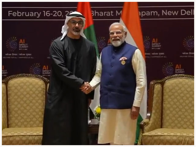 PM मोदी द्वारा अबू धाबी के क्राउन प्रिंस शेख खालिद बिन मोहम्मद बिन जायद अल नाहयान के साथ द्विपक्षीय बैठक