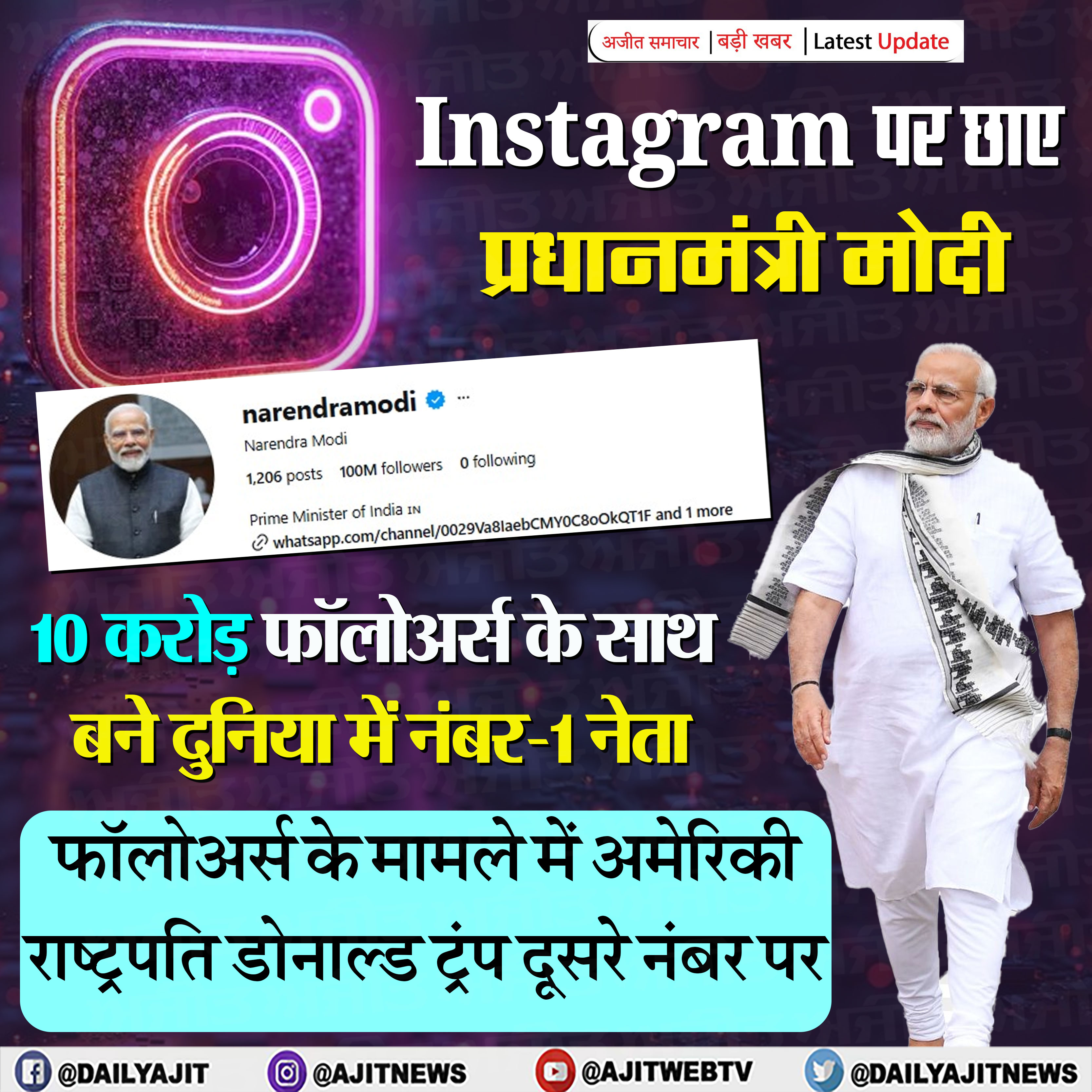 PM मोदी के इंस्टाग्राम पर 100 मिलियन फॉलोअर्स हुए