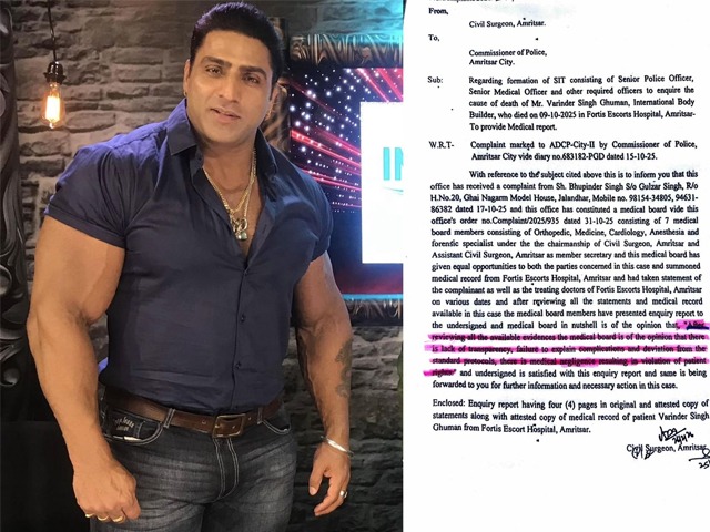 बॉडीबिल्डर वरिंदर सिंह घुमन की मौत की रिपोर्ट सामने आई, हॉस्पिटल मैनेजमेंट और डॉक्टरों पर लापरवाही का आरोप