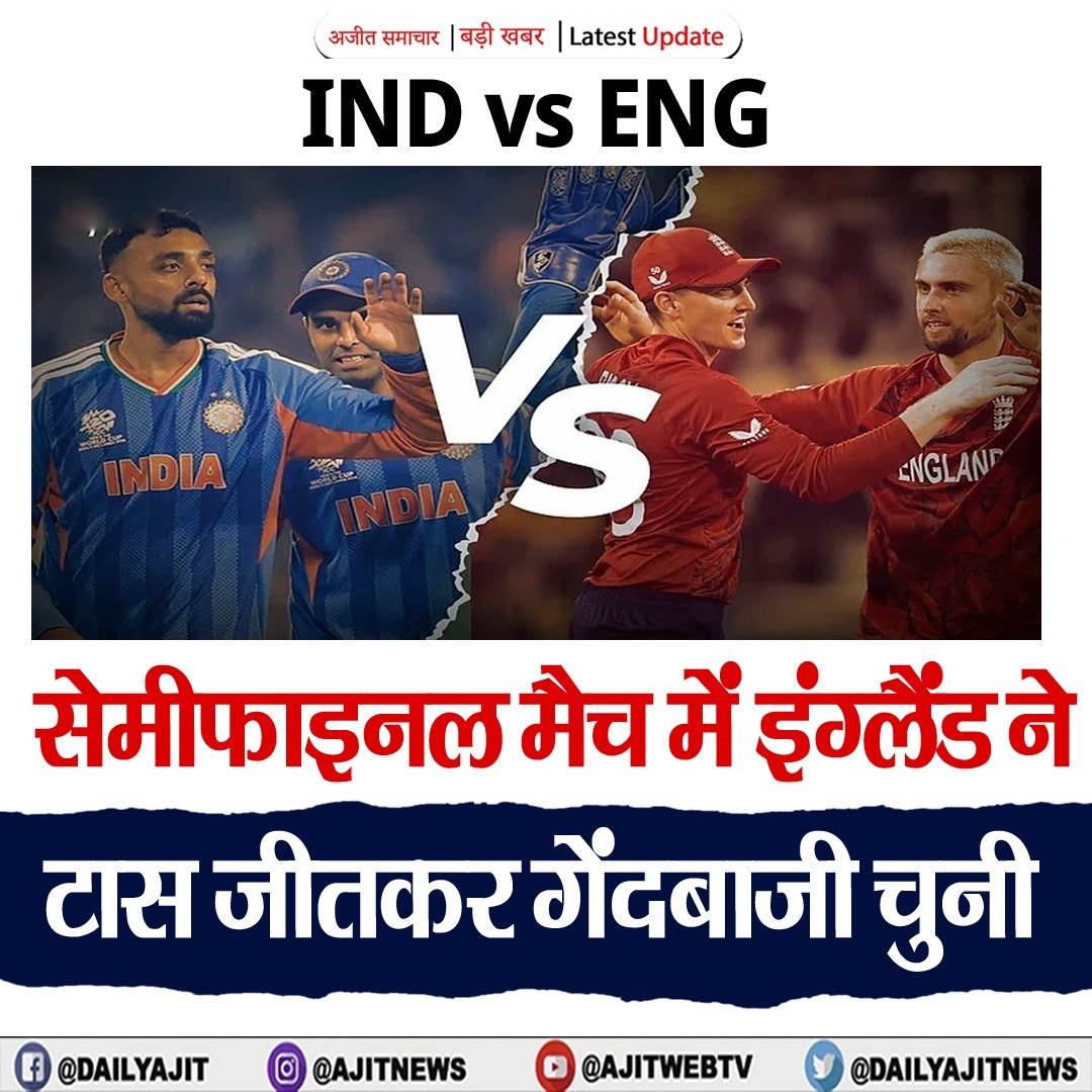 सेमीफाइनल मैच में इंग्लैंड ने टॉस जीतकर गेंदबाजी चुनी, भारत की प्लेइंग 11 में कोई बदलाव नहीं आज भारत और इंग्लैंड के बीच टी20 विश्व कप 2026 का दूसरा सेमीफाइनल मुकाबला मुंबई के वानखेड़े स्टेडियम में खेला जा रहा है। इस मैच में जीतने वाली टीम पहले सेमीफाइनल की विजेता न्यूजीलैंड से रविवार यानी 8 मार्च को अहमदाबाद के नरेंद्र मोदी स्टेडियम में फाइनल मुकाबले में भिड़ेगी। इंग्लैंड ने टॉस जीतकर पहले गेंदबाजी का फैसला किया है।