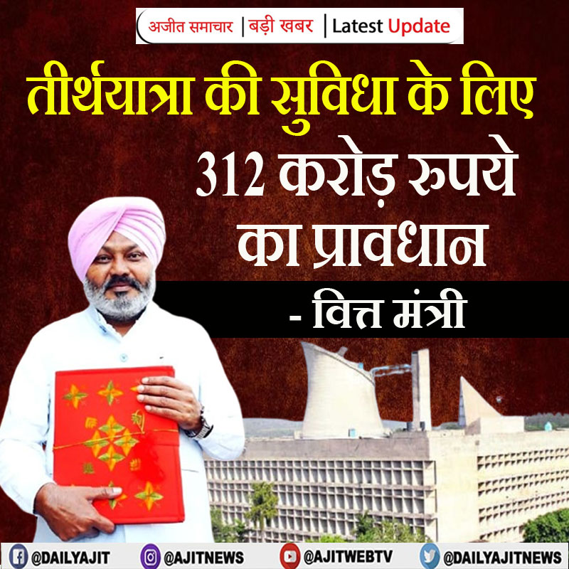 चंडीगढ़, 8 मार्च - मुख्यमंत्री तीर्थ यात्रा योजना शुरू की है, ताकि दो सर्किटों में बंटे- श्री अमृतसर साहिब और श्री आनंदपुर साहिब के प्रमुख धार्मिक स्थलों की मुफ्त और पूर्ण रूप से सहायता प्राप्त तीर्थयात्रा प्रदान की जा सके। वित्तीय वर्ष 2026-27 में, लगभग 7.15 लाख नागरिकों की तीर्थयात्रा की सुविधा के लिए 312 करोड़ रुपये का प्रावधान किया गया है। सरकार ने वित्तीय वर्ष 2026-27 में श्री गुरु रविदास जी की 650वीं जयंती को राजकीय समारोह के रूप में मनाने का निर्णय लिया है।