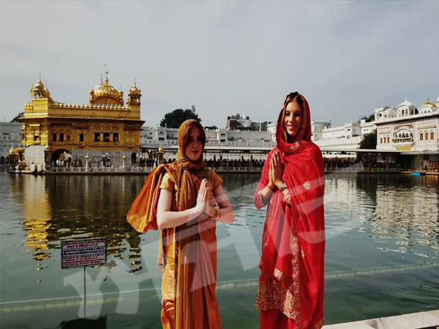 मिस ग्रेस रिचर्डसन और मिस इंग्लैंड वर्ल्ड मिस शार्लेट ग्रांट आज श्री हरमंदिर साहिब में माथा टेकने पहुंचीं