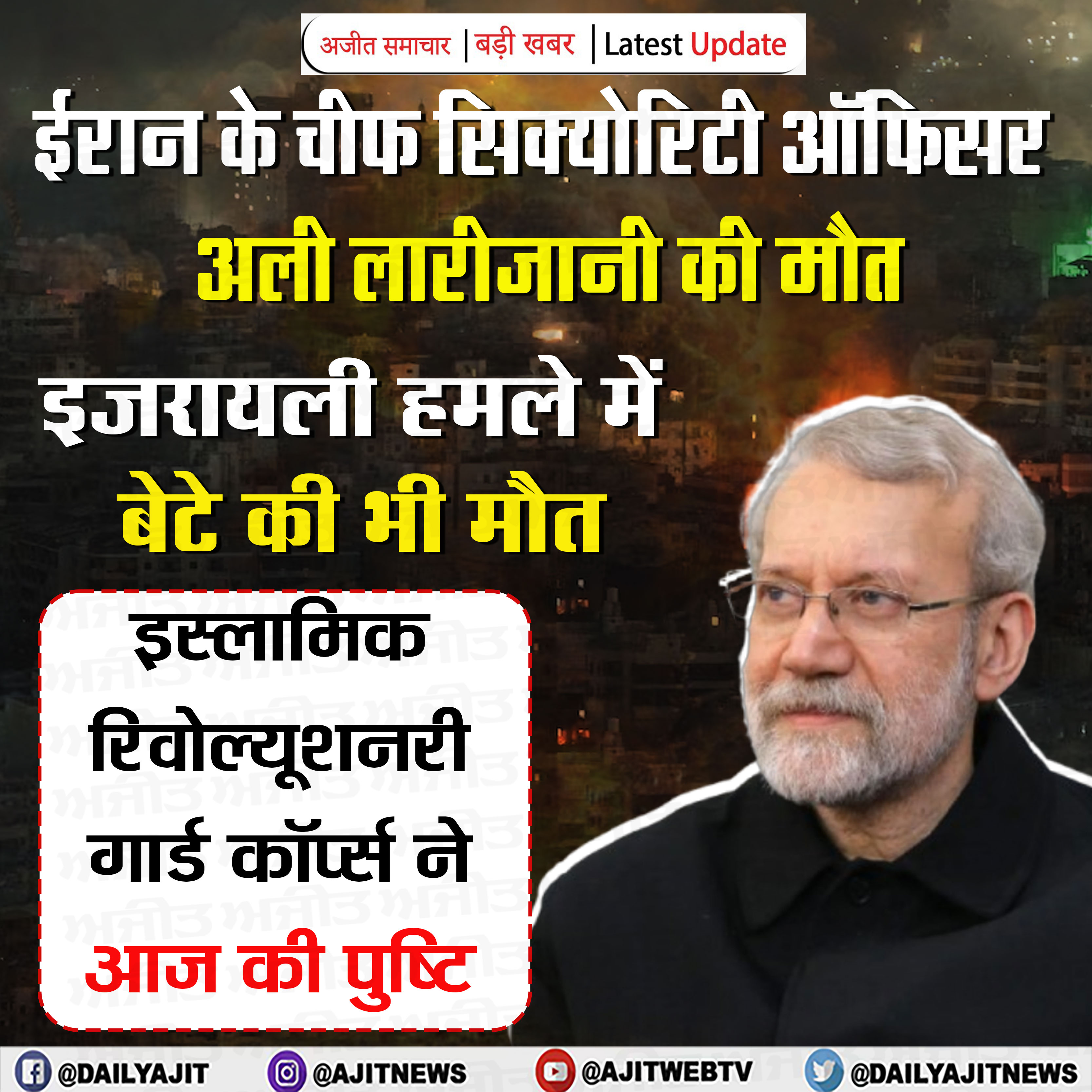 ईरान के सिक्योरिटी चीफ अली लारीजानी और उनके बेटे की इजरायली हमले में मौत