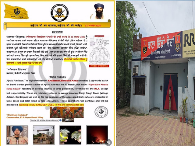 अजनाला, (अमृतसर), 31 मार्च (गुरप्रीत सिंह ढिल्लों) - कल बॉर्डर पुलिस स्टेशन भिंडी सैदां में हुए ब्लास्ट के बाद, एक संगठन का लेटर सोशल मीडिया पर वायरल हो रहा है जिसमें ब्लास्ट की ज़िम्मेदारी ली गई है। लेटर में कहा गया है कि खालिस्तान लिबरेशन आर्मी के हाई कमांड ने 30 मार्च को ऑपरेशन खालसा नवां स्वर के तहत अमृतसर के अजनाला में भिंडी सैदां पुलिस स्टेशन पर दो ग्रेनेड हमले किए, जिसकी पूरी ज़िम्मेदारी हम लेते हैं। हालांकि, इस लेटर की अभी तक किसी भी पुलिस अधिकारी ने पुष्टि नहीं की है।