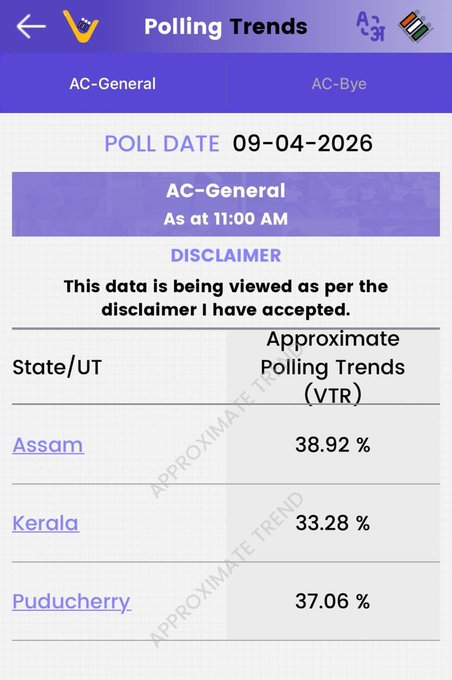 राज्य विधानसभा चुनाव | सुबह 11 बजे तक अनुमानित मतदान प्रतिशत