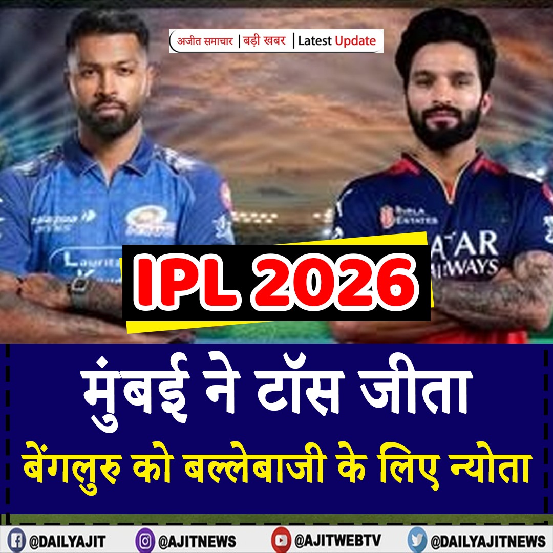 IPL 2026- मुंबई ने टॉस जीता, बेंगलुरु को बल्लेबाजी के लिए न्योता