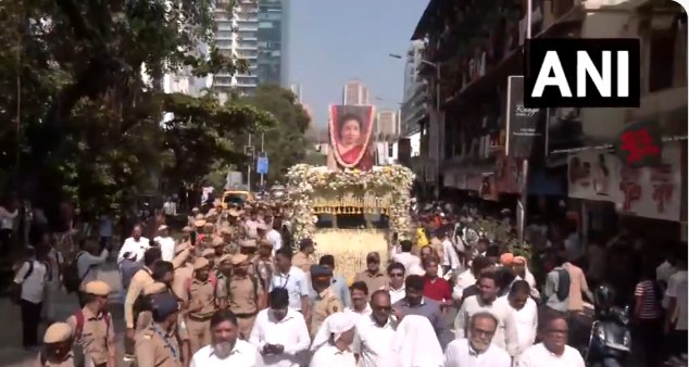 गायिका आशा भोसले अंतिम सफर पर निकल चुकी हैं। फूलों से सजे मोक्ष रथ में उनके पार्थिव शरीर को श्मशान घाट की तरफ ले जाया जा रहा है। हर आंख नम है।