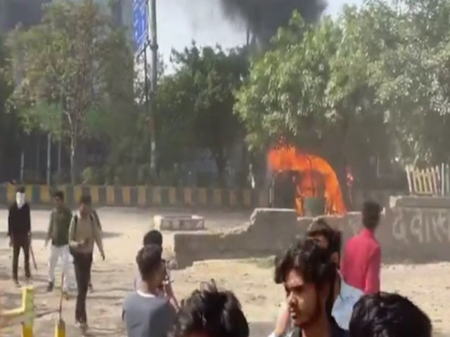 UP: उग्र लोगों ने पुलिस की गाड़ी भी फूंकी, नोएडा में वेतन की मांग पर आक्रोश