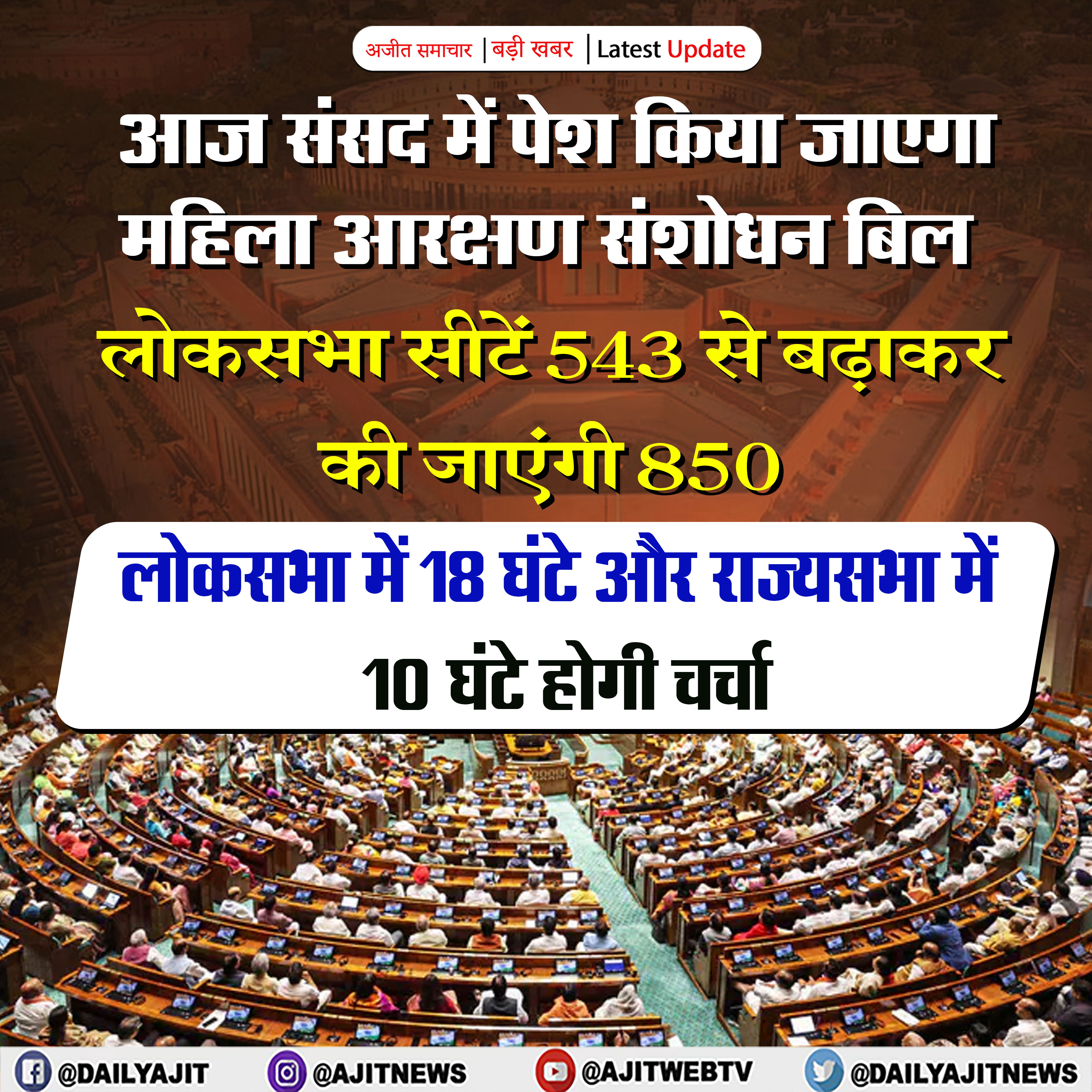 महिला आरक्षण संशोधन बिल आज संसद में पेश किया जाएगा
