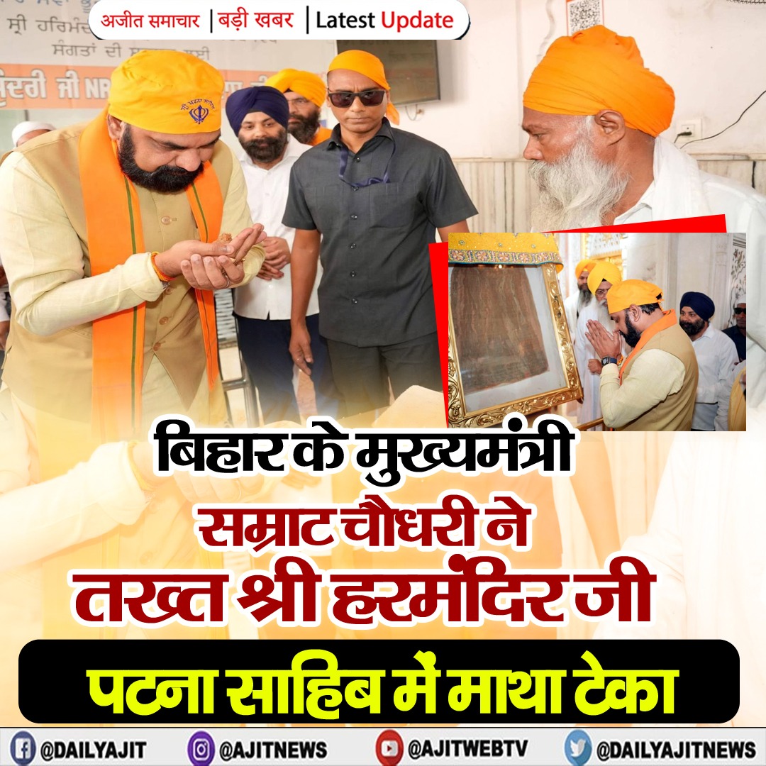 बिहार के मुख्यमंत्री सम्राट चौधरी ने तख्त श्री हरमंदिर जी पटना साहिब में माथा टेका