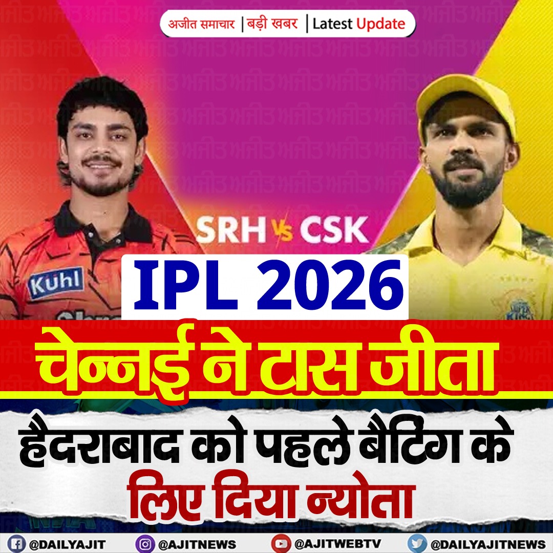IPL 2026: चेन्नई ने टॉस जीता, हैदराबाद को पहले बैटिंग के लिए दिया न्योता