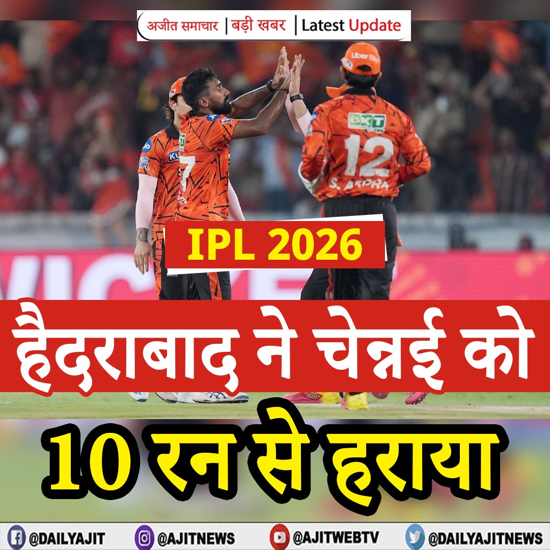 IPL 2026 - हैदराबाद ने चेन्नई को 10 रन से हराया