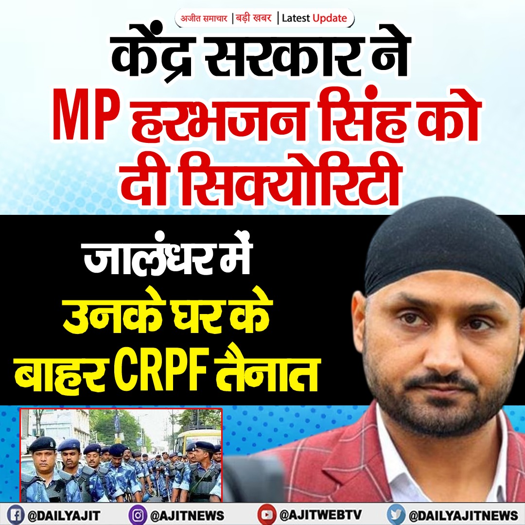 जालंधर, 26 अप्रैल- केंद्र सरकार ने MP और पूर्व क्रिकेटर हरभजन सिंह को CRPF सिक्योरिटी दे दी है। ये सिक्योरिटी वाले जालंधर में उनके घर के बाहर तैनात किए गए हैं। आपको बता दें कि पंजाब सरकार ने हरभजन सिंह की सिक्योरिटी वापस ले ली थी। उनके घर के बाहर से सिक्योरिटी वाले हटा दिए गए हैं।
