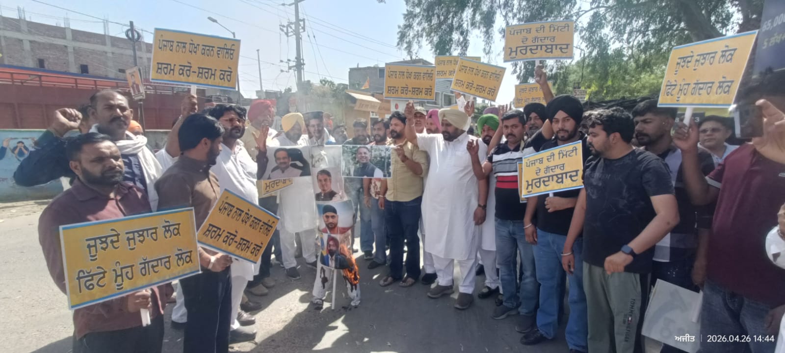 विधायक भुल्लर की अगुवाई में आप कार्यकर्ताओं ने बागी राज्यसभा सदस्यों के पुतले फूंके