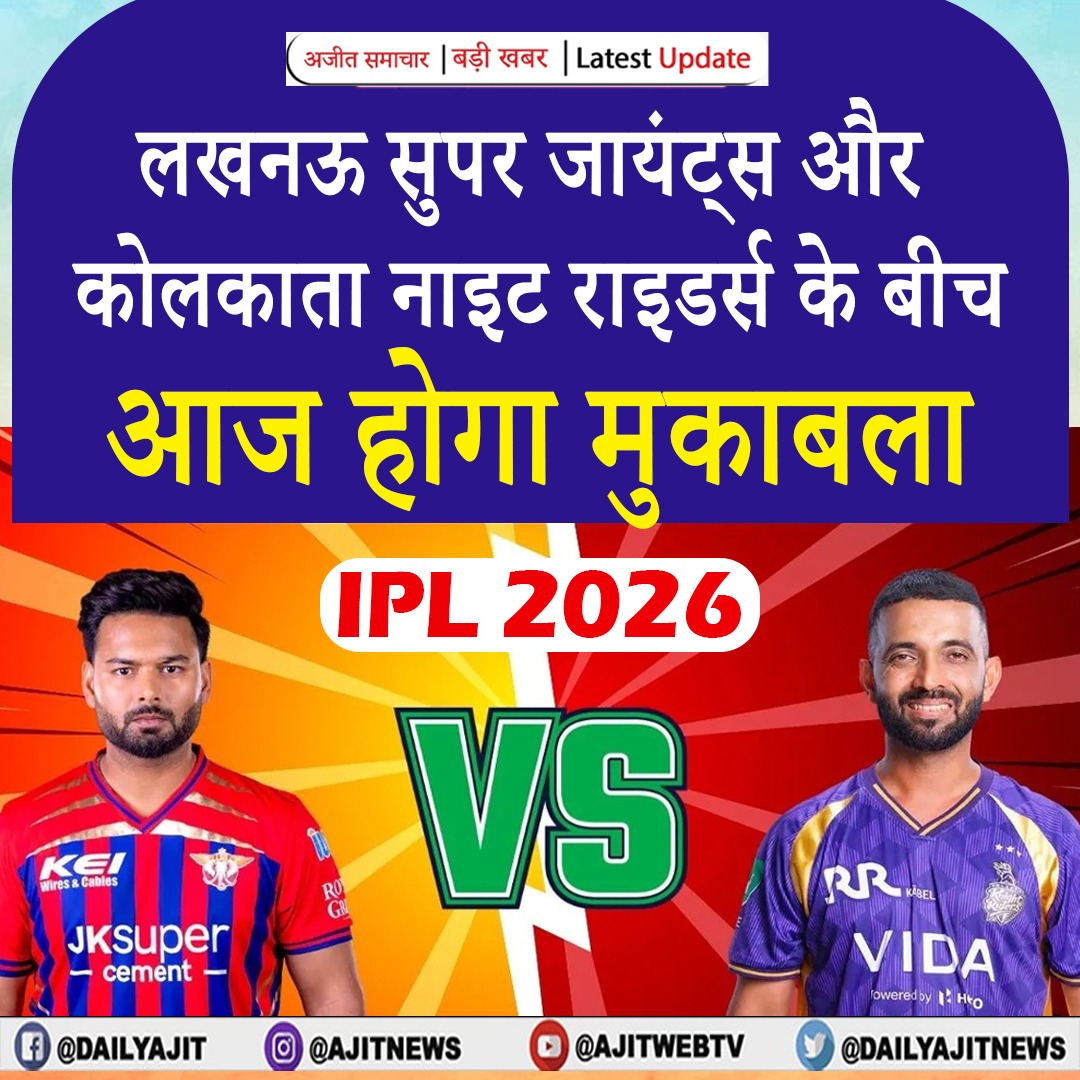 #IPL 2026: लखनऊ सुपर जायंट्स और कोलकाता नाइट राइडर्स के बीच आज होगा मुकाबला