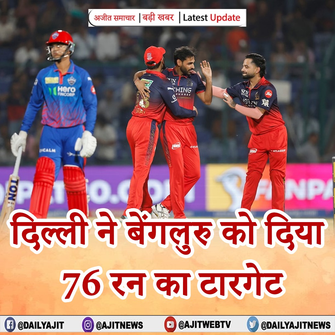 IPL 2026 - दिल्ली ने बेंगलुरु को दिया 76 रन का टारगेट