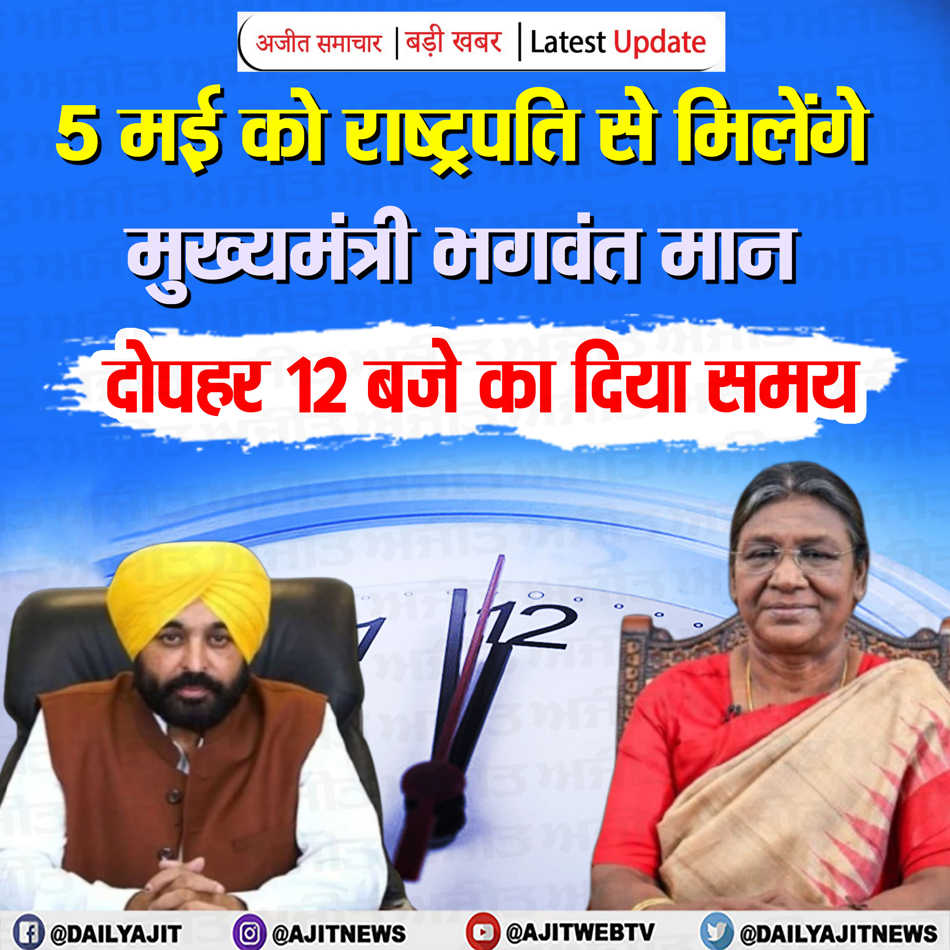 5 मई को राष्ट्रपति से मिलेंगे मुख्यमंत्री भगवंत मान