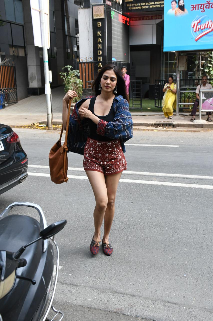 मालविका मोहन बांद्रा में सैलून के बाहर दिखीं